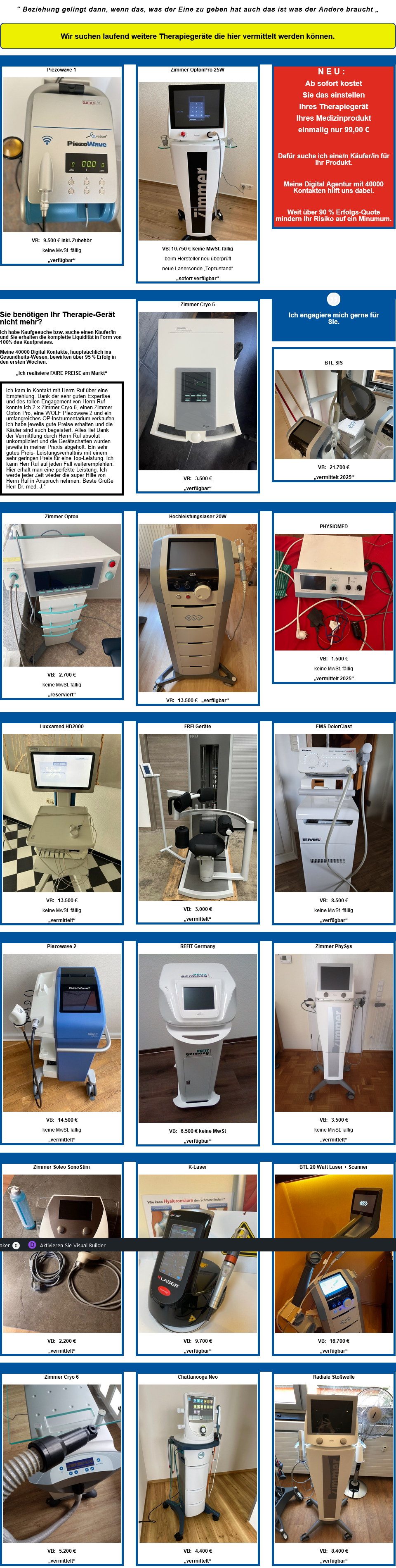 Wir erhalten monatlich über > 50 Anfragen für gute gebrauchte Therapiegeräte